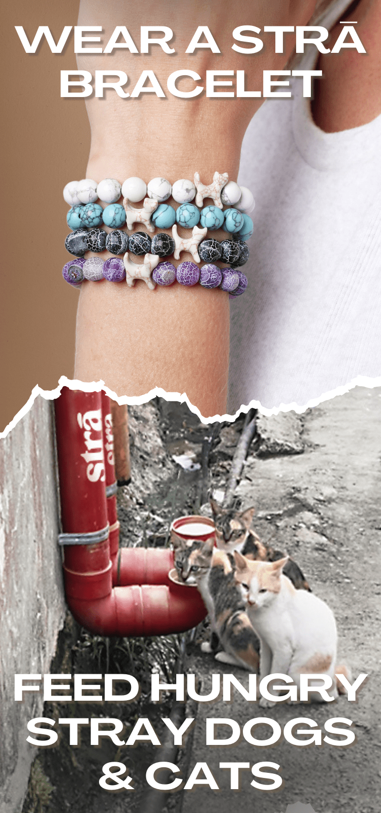 Every STRĀ bracelet funds 10 meals for stray dogs and cats.