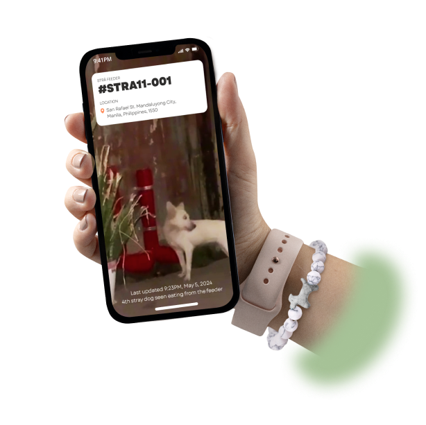 Scan your tracking code once your bracelet arrives to see photos and videos of all the stray dogs & cats eating and drinking from your feeder.