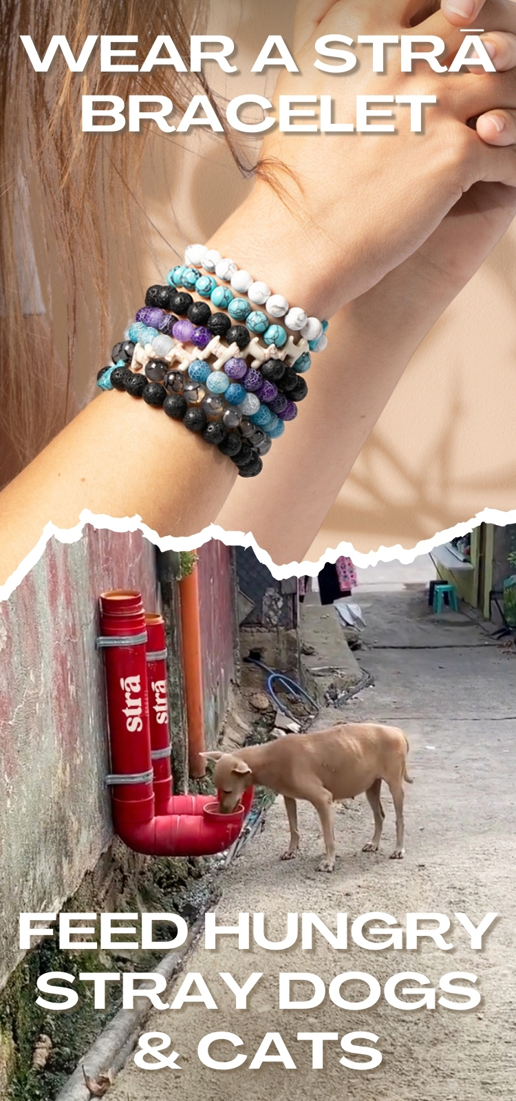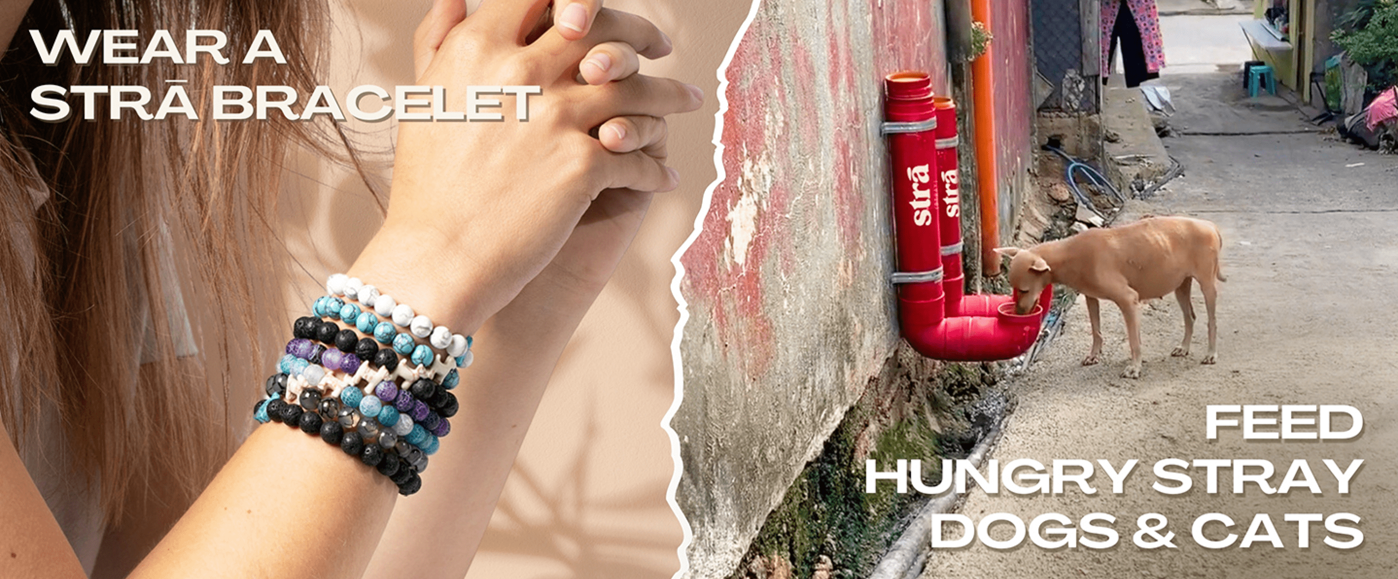 Every STRĀ bracelet funds 10 meals for stray dogs and cats.