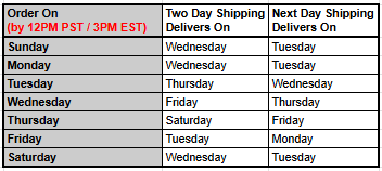 Expedited shipping (2-Day or Next-Day Delivery) is only available for items shipping from California.