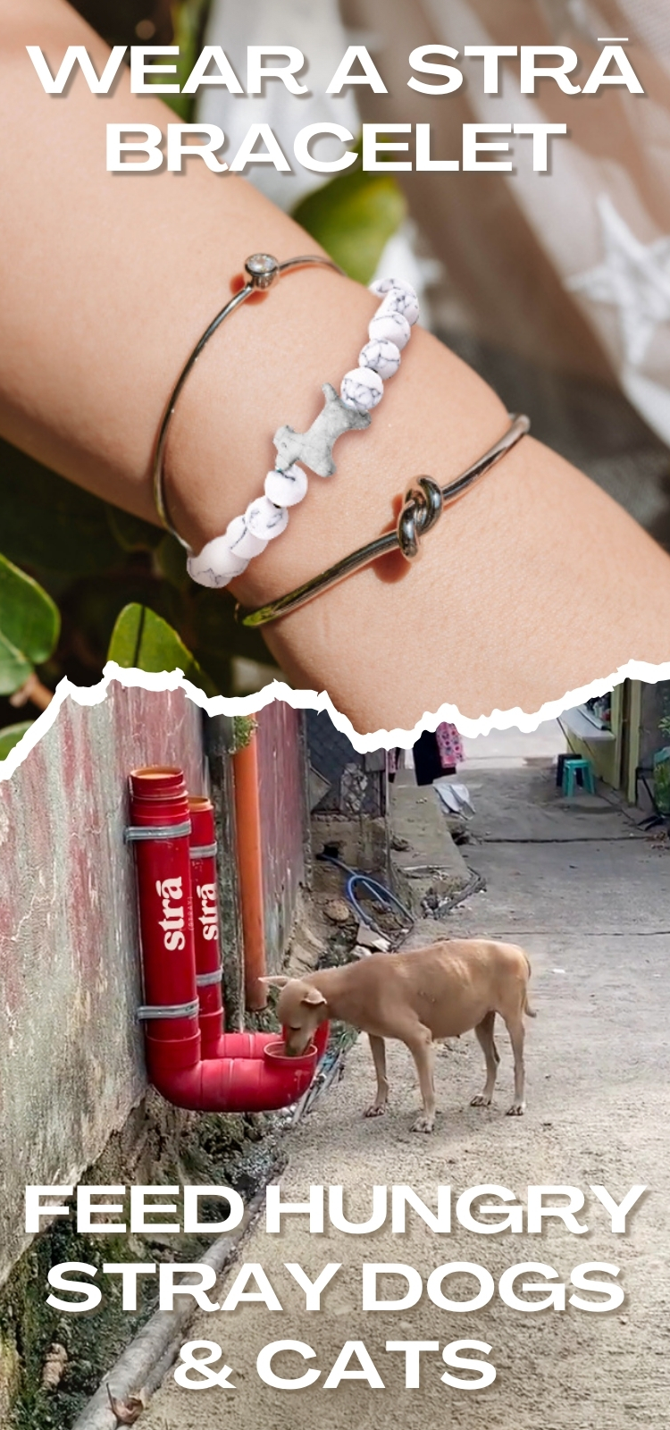Every STRĀ bracelet funds 10 meals for stray dogs and cats.