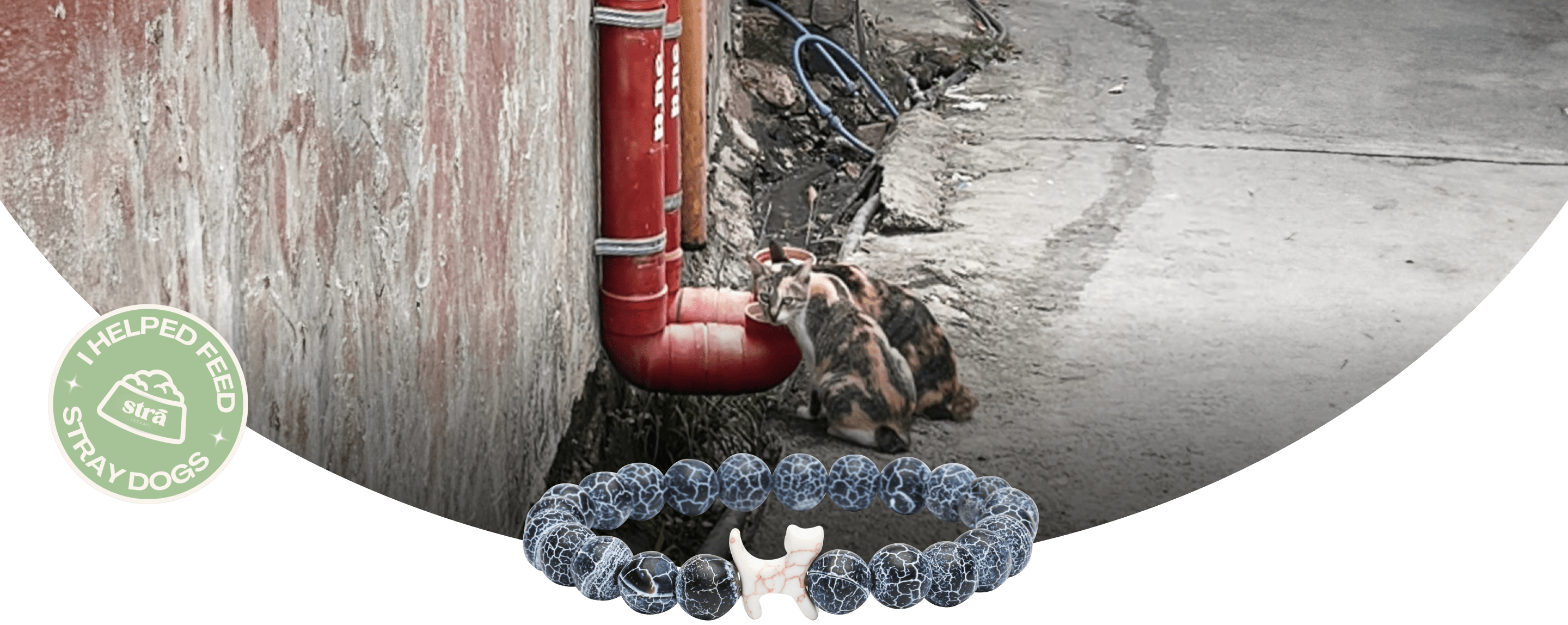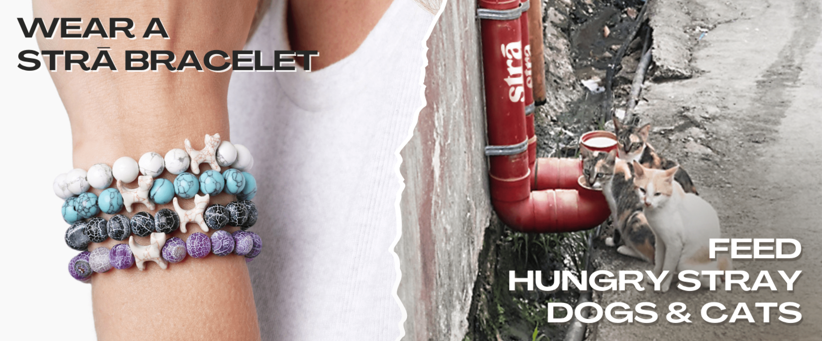 When you buy a STRĀ Signature Bracelet, you’re doing more than just accessorizing. You’re joining a mission to fund meals that are loaded into street feeders all over the world that hungry dogs and cats eat from.